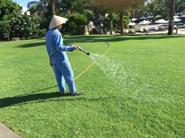 Trồng cỏ cho thu nhập cao nhưng cũng vất vả, giống như trồng rau. Mùa nắng nóng thì thường xuyên tưới nước, còn mùa mưa thì phải trực chiến không để cỏ bị ngập. Nhưng cái sướng là trồng ra bao nhiêu cũng không đủ cung cấp loại cỏ trang trí này.