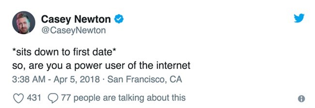"Tôi hỏi Zuckerberg là liệu anh đã đăng ký dùng ứng dụng kiểu như trắc nghiệm tâm lý của Kogan hay chưa, dưới tư cách là người dùng Facebook. Anh ấy trả lời: "Tôi chắc chắn là có dùng nhiều ứng dụng; tôi là một người chuyên dùng Internet"