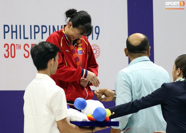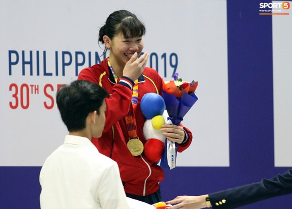 "Tiểu tiên cá" Nguyễn Thị Ánh Viên đã giành tổng cộng 5 HCV và 1 HCB tại SEA Games 2019 sau khi kết thúc ngày thi đấu 7/12. Nhưng có lẽ vẫn còn điều khiến Ánh Viên chưa thực sự vui và chỉ cười sau khi được nhắc từ ban tổ chức.
