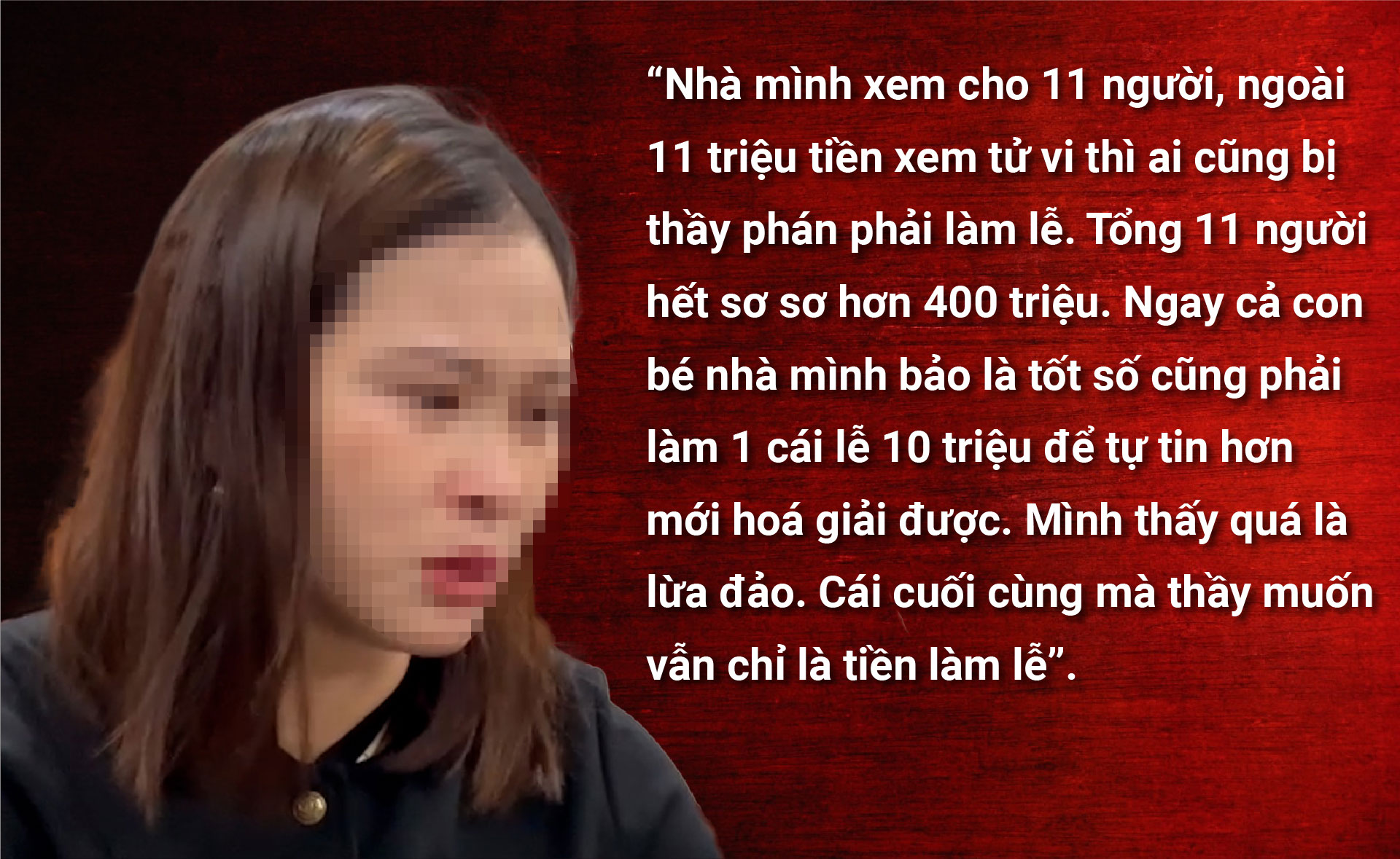 Sau khi biết, thầy Cao Anh có thể xem tử vi cho cả những người không có mặt tại Linh Quang Điện, gia đình chị T. đã bỏ ra 11 triệu mua 11 lá số cho các thành viên trong đại gia đình.