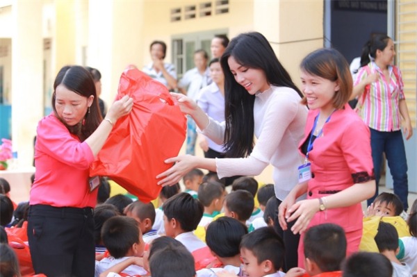 Hoa hậu Việt Nam 2014 cùng với những người bạn của cô đã vượt gần 200 cây số, có mặt tại một ngôi trường nhỏ của các em học sinh vùng biên giới thuộc huyện Tân Châu - Tây Ninh.