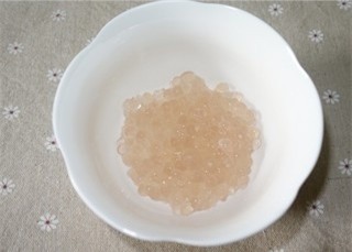 - Ta tiến hành luộc hạt trân châu. Cho nước vào trong nồi đun sôi. Trong lúc ấy ta rửa qua trân châu rồi đổ vào nồi nước sôi. Đảo trân châu để tránh bị dính vào đáy nồi. Đun cho đến khi hạt trân châu trở nên trong suốt là được. Sau đó, ta đổ hạt trân châu vào ngay nước sôi để nguội, bỏ thêm đá. Quá trình này giúp hạt trân châu khi chín không bị nát mà cứng hạt và giòn, ăn ngon hơn.