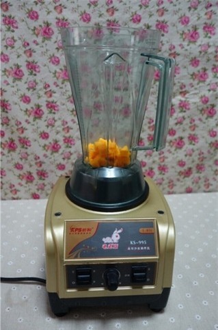 - Lấy khoảng 3/4 chỗ xoài vừa cắt cho vào máy xay sinh tố (bạn nên giữ lại phần xoài được cắt vuông đẹp mắt để trang trí cho bước sau và dùng phần xoài xấu hơn để xay).