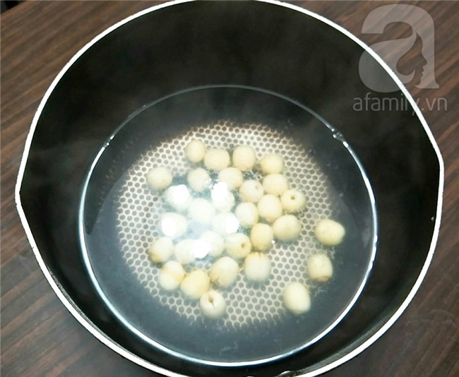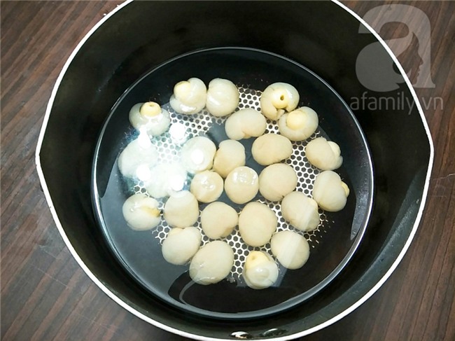 Bạn lấy từng hạt sen nhét vào trong cùi nhãn.