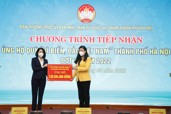 Nhằm tiếp tục thể hiện tình cảm, trách nhiệm của cán bộ, chiến sỹ, các tầng lớp Nhân dân Thủ đô với biển, đảo Việt Nam để có thêm nguồn lực tiếp tục hỗ trợ xây dựng các công trình ý nghĩa, góp phần nâng cao đời sống vật chất, tinh thần của quân và dân trên các vùng biển, đảo của Tổ quốc, Ủy ban MTTQ Việt Nam Thành phố đã ra lời kêu gọi ủng hộ Quỹ "Vì biển, đảo Việt Nam" của thành phố Hà Nội năm 2022. Thời gian phát động và tiếp nhận ủng hộ từ 01/03/2022 đến 31/5/2022. Tính đến thời điểm hiện tại, đã có 41 đơn vị đăng ký ủng hộ với số tiền 25,8 tỷ đồng.