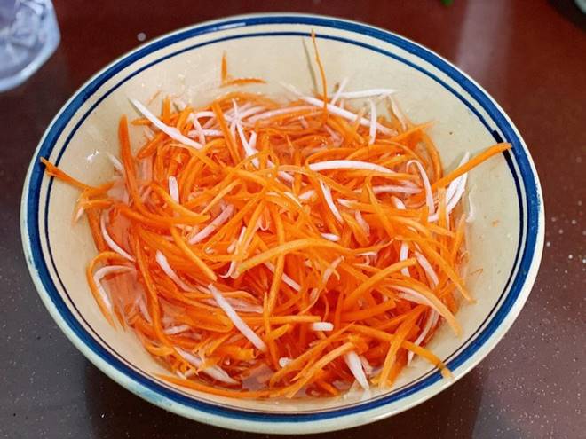 - Cà rốt, củ cải trắng gọt vỏ, rửa sạch, bào sợi.