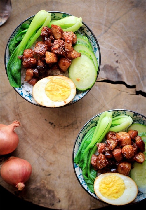- 25g đường phèn; 4 muỗng canh nước tương loại nhạt màu, 2 muỗng canh nước tương đen (loại tối màu); 4 muỗng canh rượu nấu ăn; 4 quả trứng luộc, bóc vỏ; 4-5 tép tỏi, thái lát; ¼ muỗng cà phê hạt tiêu; 2 nhánh hành lá, lấy phần trắng thái nhỏ; 2-3 cây cải chíp luộc ăn kèm