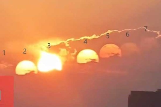 Người dân Thành Đô vô cùng sửng sốt khi nhìn thấy hình ảnh 7 'mặt trời' đang lặn dần vào chiều tối 18/8.