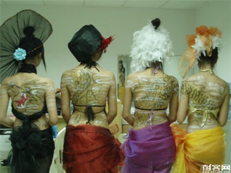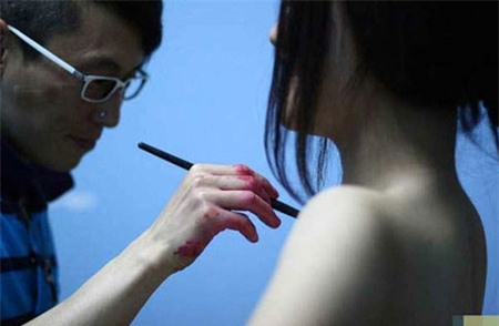 Mẫu body-painting gặp rất nhiều khó khăn trong nghề. |