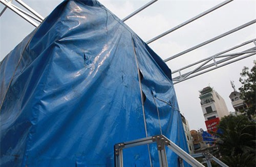 Tàu được phủ kín bằng những tấm bạt |