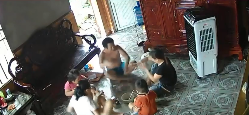 Chẳng rõ nguyên nhân vì sao khiến 2 vợ chồng xảy ra xích mích, cãi cọ trong bữa cơm. Không kiềm chế được cảm xúc, người chồng liền đập vỡ bát cơm đang ăn dở rồi giơ tay chửi bới vợ ngay trước mặt 3 đứa con thơ.
