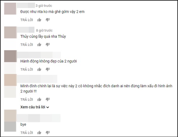 Với biểu cảm cong môi quá đà, Mâu Thủy và Chúng Huyền Thanh được cho là "đá xéo", thậm chí nhạo báng nhan sắc của hoa hậu Lê Âu Ngân Anh. Hiện clip livestream của hai chân dài này đang được chia sẻ rộng rãi trên mạng xã hội và hứng chịu nhiều ý kiến trái chiều.