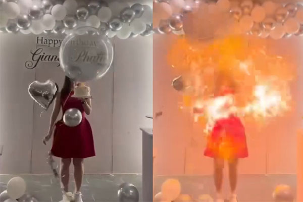 Chứng kiến vụ việc, tất cả 4 người có mặt đều hoảng hốt, bật dậy khỏi ghế. Trong khi hai người phụ nữ vội vàng chạy ra cửa tránh thoát thì một nữ nhân viên khác thì chạy vào bên trong nhà tìm đồ để dập lửa.