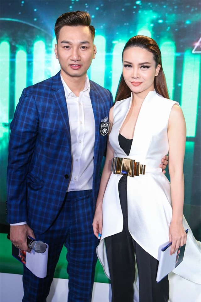 | MC Thành Trung và Yến Trang cũng đầu tư trang phục không thua kém các thí sinh. |
