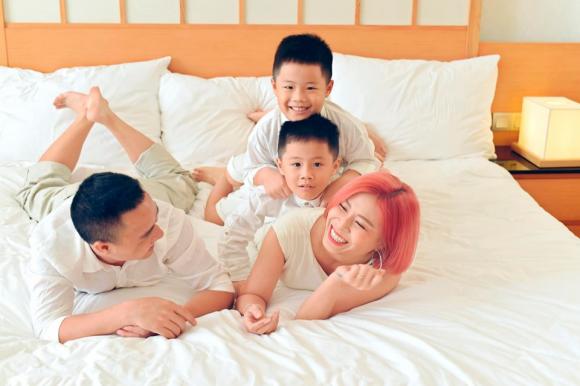 Dù còn rất nhỏ tuổi nhưng cặp song sinh của MC Hoàng Linh tỏ ra vô cùng tự tin và diễn xuất chuyên nghiệp trước ống kính trong bộ ảnh gia đình.