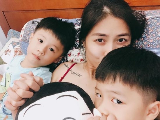 MC Hoàng Linh của chương trình Chúng tôi là chiến sĩ chia sẻ hình ảnh tình cảm bên hai con. Cô viết: "Ngoài kia có giông bão, sân si gì cũng mặc, nhà tớ ôm nhau đi ngủ đây!".