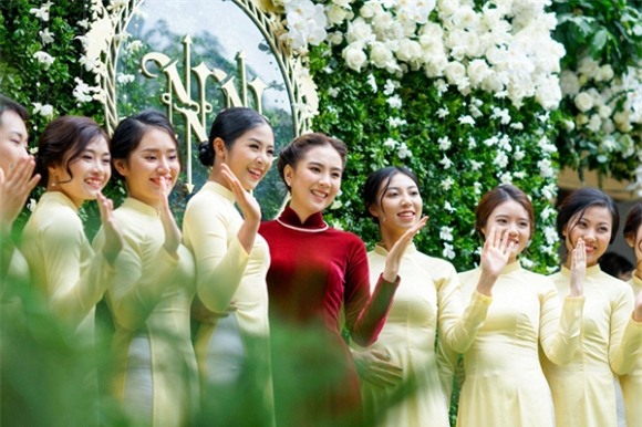 HH Ngọc Hân chụp ảnh cùng dàn phù dâu xinh đẹp. Ngọc Hân chính là một trong những người bạn thân thiết của Mai Ngọc.