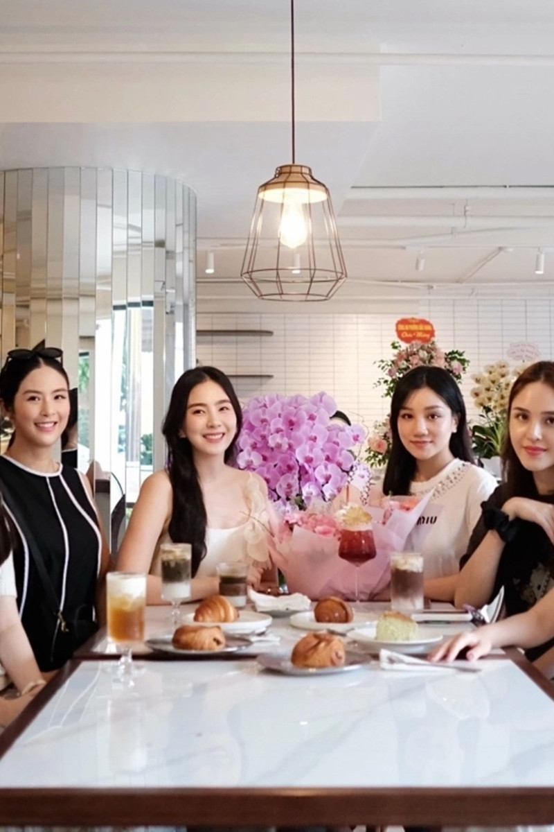 Bên cạnh những giây phút ấm áp bên con cái, Mai Ngọc vẫn giữ kết nối với bạn bè ở thành phố. Cô thường xuyên mời họ về Bắc Ninh, đón tiếp tại nhà hàng, quán cafe và trung tâm tiệc cưới của gia đình chồng. Cô cũng từng đón MC Mai Phương, hoa hậu Ngọc Hân, á hậu Hoàng Anh tại quán cafe của gia đình chồng.