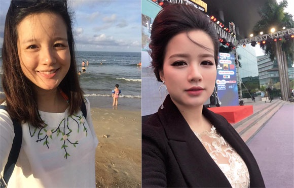 Nhưng với mình thì chỉ thi thoảng thôi, chứ liên tục thì mình không sống nổi mất. Nhiều hôm dẫn ở Đài xong, mình phải mang theo chai dầu tẩy trang, dẫn chương trình xong là chạy tuột vào nhà vệ sinh tẩy trang sạch sẽ rồi mới yên tâm đi về nhà được. Hậu quả của việc trang điểm nhiều và thường xuyên phải dán kích mí, là bây giờ mí mắt trên của mình rất nhiều da thừa, nhiều hôm còn lẩn hết cả mí chả thấy mí đâu, nhìn như mắt 1 mí luôn. Rồi mỗi lần make up mắt bôi mascara rồi gắn mi, banh mắt ra để kẻ viền trong viền ngoài, mắt cay xè, tẩy trang cũng rất vất vả".
