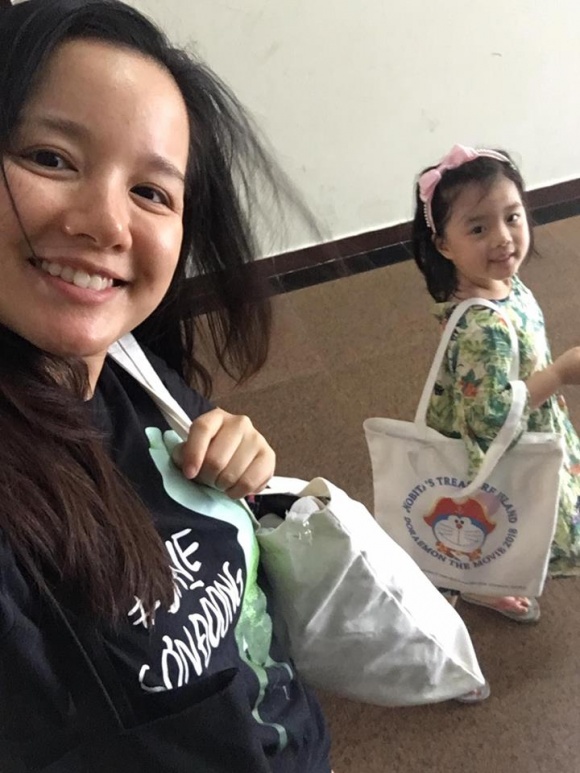 MC Minh Trang rất thích để mặt mộc khi ở bên cạnh gia đình.