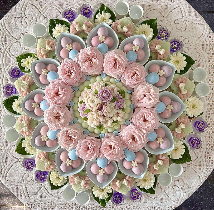 “Ban đầu mình chưa có vốn, cũng không được học hành bài bản về việc sắp xếp mâm lễ và phối màu nên chỉ làm theo cảm tính và sở thích.
