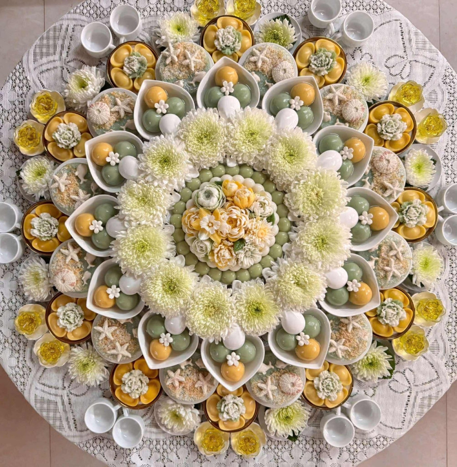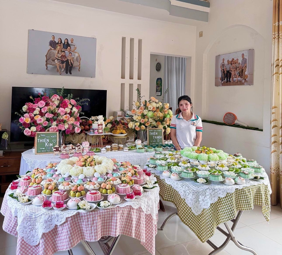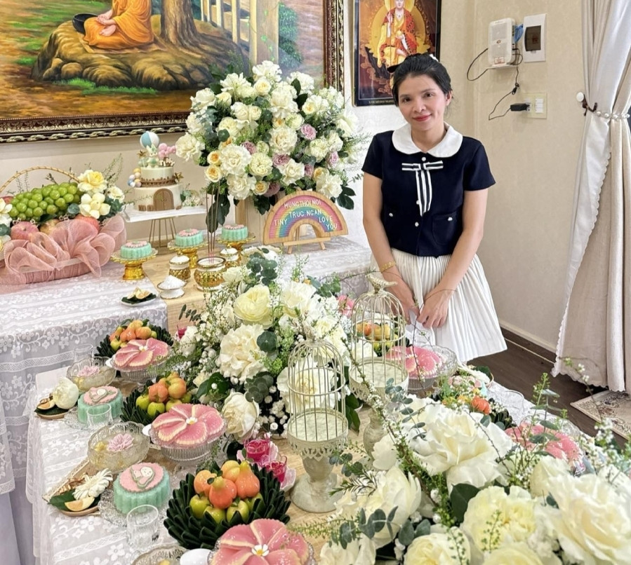 Sau đó, mình tìm tòi học hỏi trên mạng xã hội, tìm lỗi sai, học cách phối màu và sắp xếp mâm lễ thật chỉn chu. Có đêm mình thức trắng để làm đi làm lại cho tới khi thấy ưng ý mới thôi…”, chị Nga nói.