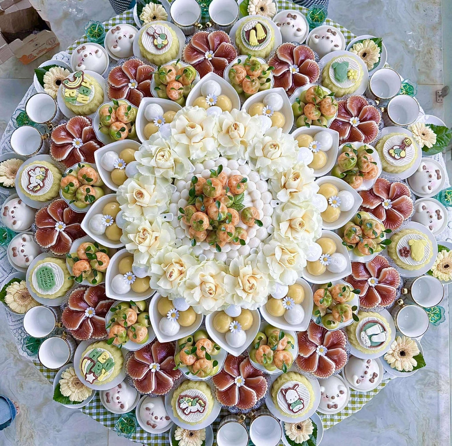 Không ngờ, từ quyết định tình cờ ấy, bà mẹ 5 con đã bén duyên với nghề làm mâm lễ thôi nôi cho các bé sơ sinh. Căn bếp nhỏ trở thành không gian sáng tạo và chữa lành, mang lại niềm vui cho cả chị và các gia đình có con nhỏ khác.