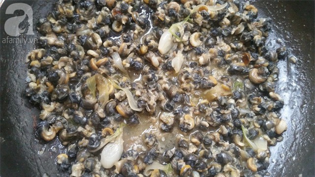 Phi thơm hành hoa cùng dầu ăn rồi cho phần ốc vào đảo đều, thêm chút gia vị cho đậm đà. Đợi khi ốc bắt đầu săn lại, có mùi thơm thì tắt bếp, cho ốc vào bát để lát cho vào bún.