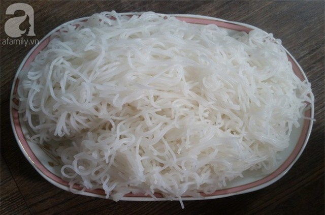 Bún chần qua nước sôi nóng cho mềm.