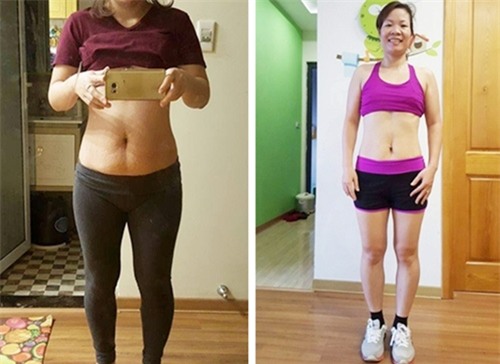 Như vậy, sau 4 tuần tập luyện đầu tiên, chị đã giảm được hơn 4kg và 13cm vòng 2 (từ 95cm xuống 82cm). Dù từng mang thai đôi nên bụng chị rất to và rạn, nhưng khi bụng nhỏ lại thì gần như da thừa cũng dần dần biến mất, bụng săn và đỡ chảy sệ hơn hẳn.