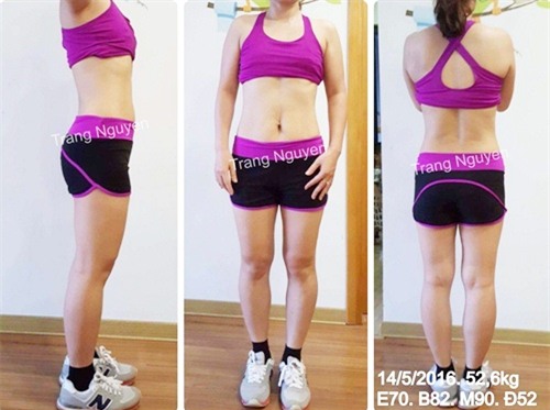 Sau 4 tuần tập luyện đầu tiên, chị đã giảm được vòng bụng từ 95cm xuống 82cm và cân nặng từ 57kg xuống còn gần 53kg.