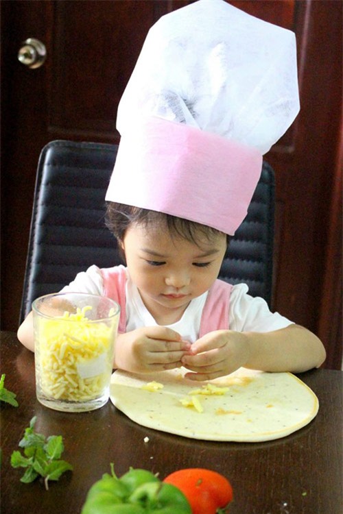 Mình không để con coi bếp núc là một công việc mà biến đó thành trò chơi bán đồ hàng để thu hút con. Cho con đeo tạp dề, gấp cho con chiếc mũ đầu bếp, bé sẽ có cảm giác mình là người đầu bếp tí hon thực thụ và bị cuốn hút vào trò chơi.