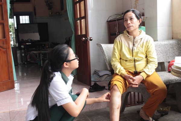 Qua tìm hiểu, chị Thủy có một khối u dưới chân, phải mổ, tái khám nhiều lần, rất tốn kém. Khối u này đã ảnh hưởng đến sức khỏe của chị nhiều năm nay, nhất là mỗi khi trở trời.