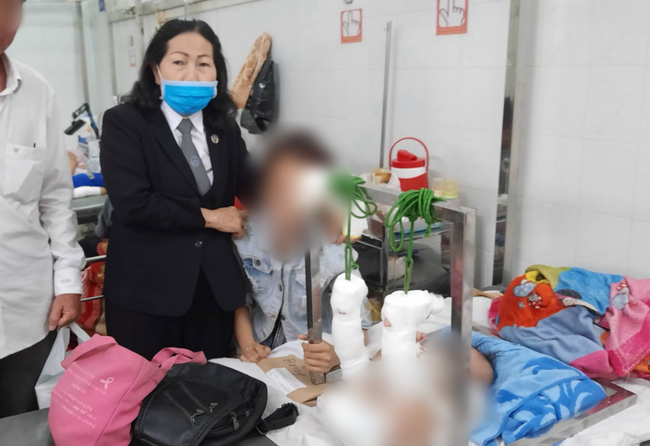 Luật sư Trần Thị Ngọc Nữ trong lần hỗ trợ trẻ tại BV Nhi Đồng 2, TP.HCM.
