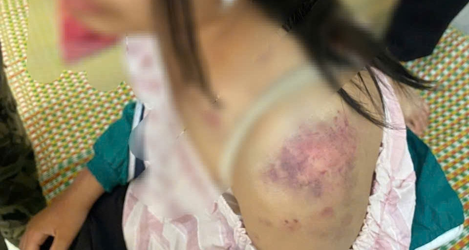 “Cháu bị bầm tím toàn thân, từ đỉnh đầu xuống gót chân, chỉ phần bụng và mông là không bị đánh. Cháu đau lắm, phần mềm tổn thương nặng, ngủ còn giật mình vì sợ hãi, ăn uống vào là hay bị nôn”, chị T nghẹn ngào nói.