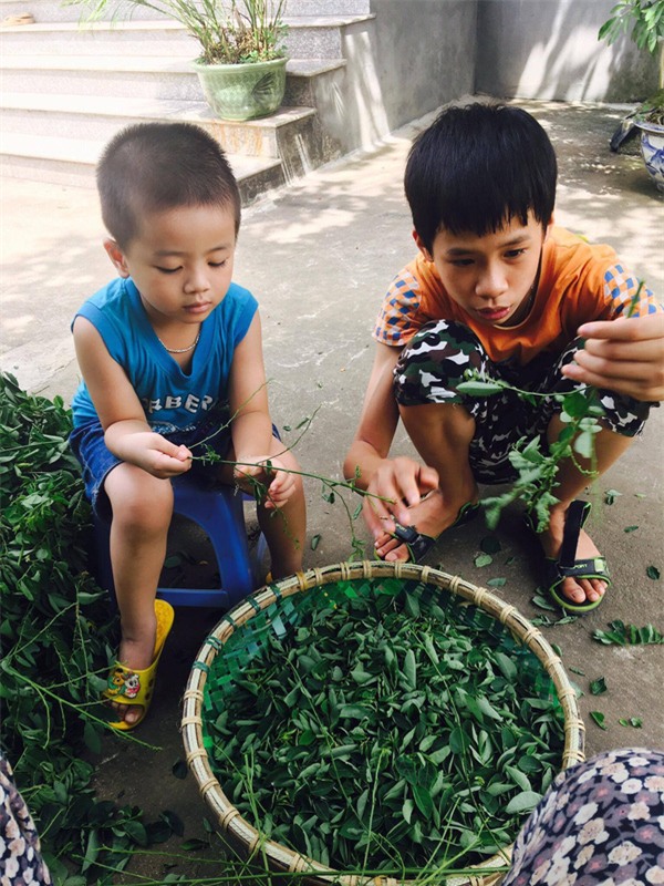 “Bọn trẻ trong nhà rất yêu lao động và được trả công sòng phẳng. Gia Huy và Bờm (cháu con dì) ngoài giờ học tham gia làm cỏ, chăm chó mèo, nhổ luống rau, vận hành hệ thống tưới tiêu rồi thu hoạch, cắt rau củ quả, đóng mở cửa chuồng. Giờ làm việc là 6 - 8 giờ sáng và 5 rưỡi - 7 giờ tối, được nhận 50.000 đồng tiền công mỗi ngày. Tiếp xúc với thiên nhiên từ nhỏ, nên các con hiểu từng loại cây và trân trọng đồng tiền mình kiếm được".