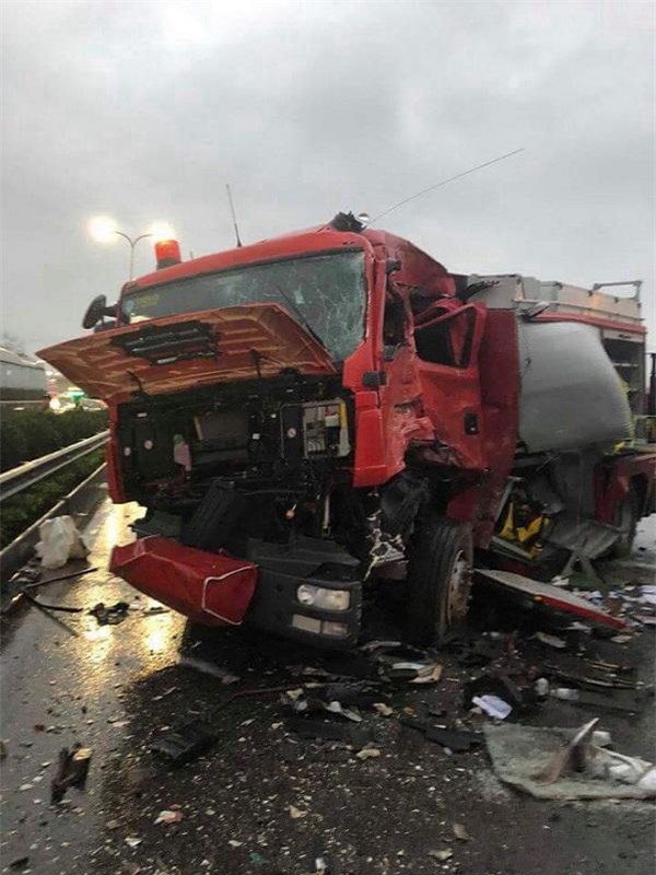 Cú đâm mạnh đã khiến xe giường nằm biến dạng, còn xe cứu hỏa quay ngang đường. Vụ tai nạn làm 1 chiến sĩ PCCC tử vong, 7 người bị thương phải nhập viện cấp cứu.