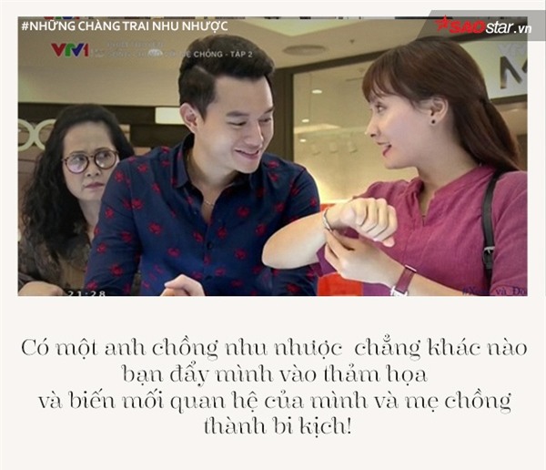 Trong trường hợp này, gặp phải một người chồng nhu nhược thì những mâu thuẫn chỉ ngày một sâu sắc. Đứng trước cuộc chiến giữa một bên là vợ một bên là mẹ mình, rất nhiều người chồng vì sự như nhược của mình mà đẩy mối quan hệ giữa hai người phụ nữ mà anh ta yêu thương nhất vào bế tắc, đẩy vợ mình vào bi kịch.
