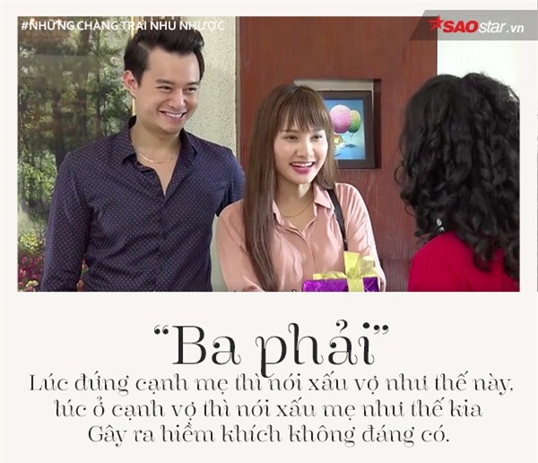 Có người ba phải, lúc đứng với mẹ thì nói những câu cho vừa lòng mẹ như là vợ con dở tệ thế này, xấu xa thế kia, rồi khi không có mẹ lại vỗ về vợ rằng mẹ anh cổ hũ, khó tính, chỉ có em là đúng là nhất.