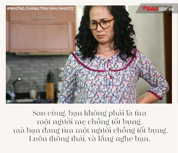 Một đứa con trai đã trưởng thành, biết xoa dịu những cơn thịnh nộ, biết khơi gợi những yêu thương cảm thông từ mẹ của mình thì người vợ mới có thể bớt phải chịu đựng sự hà khắc, cay nghiệt từ mẹ chồng. Một người chồng biết an ủi, chỉ bày cho vợ của mình, thì người vợ mới có thể bớt đi cảm giác tủi thân của thân phận “đứa con gái ở đâu đâu” về sống chung với toàn những người xa lạ.