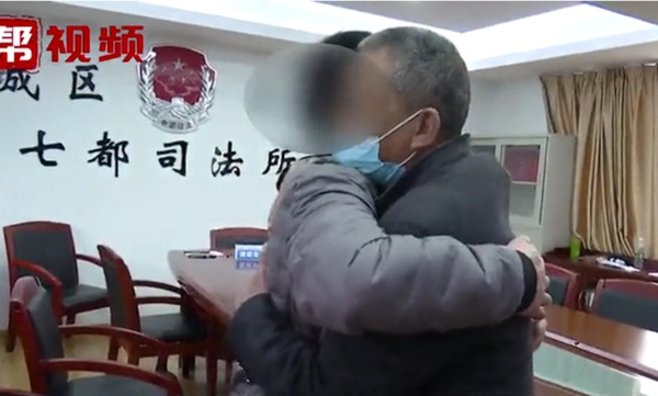Cả nhà ôm nhau khăng khít sau khi được hòa giải.