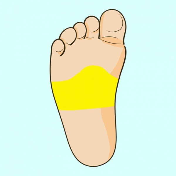 Mát xa ở phần trên của gan bàn chân, nơi lòng bàn chân bắt đầu lõm vào, có thể giúp bé bớt các triệu chứng khó chịu như táo bón và khó tiêu. Bạn có thể mát xa từng chân một, nhưng tốt nhất là mát xa cả hai chân cùng một lúc.