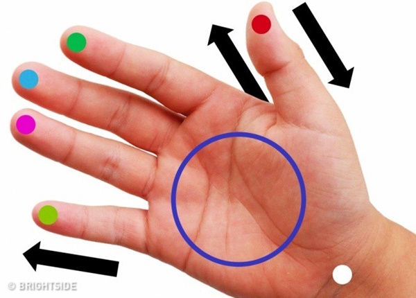 Cách mát xa: Dùng ngón tay cái nhấn nhẹ nhàng và di chuyển từ dưới lên trên, từ trái qua phải theo chiều kim đồng hồ.