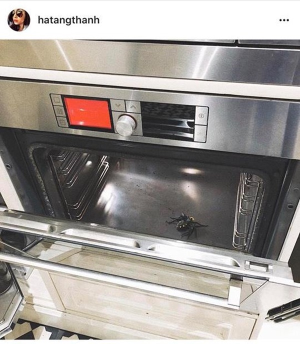 Tăng Thanh Hà cũng từng "thót tim" vì trò nghịch ngợm của con trai. Cậu bé hiếu động, nghịch ngợm bỏ một chú nhện đồ chơi vào lò vi sóng của mẹ khiến Hà Tăng phải chụp lại "bằng chứng" và chia sẻ: "Chàng trai nhỏ của tôi đã làm điều này với tôi" cùng biểu tượng khuôn mặt sợ hãi.