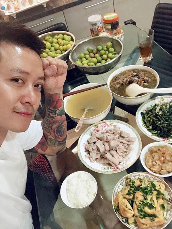 Tuấn Hưng đương nhiên không thể không chụp một bức ảnh bên mâm cơm vợ nấu.