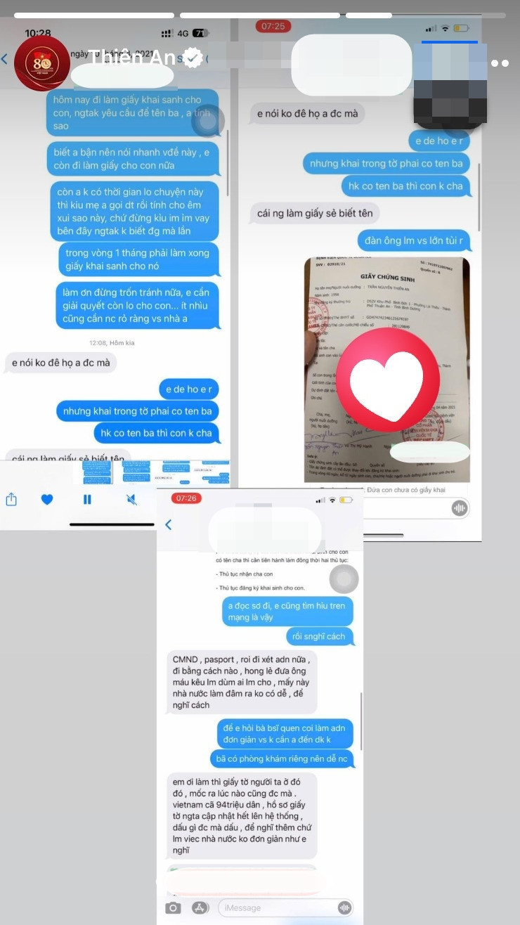Được biết những tin nhắn Thiên An công khai có mốc thời gian năm 2021, khi cô sinh con gái Sol. Trong đó, cô công khai giấy chứng sinh và những thông tin liên quan.