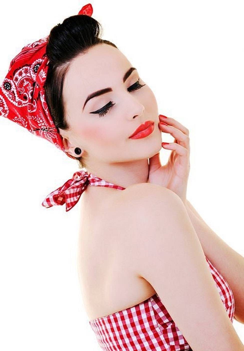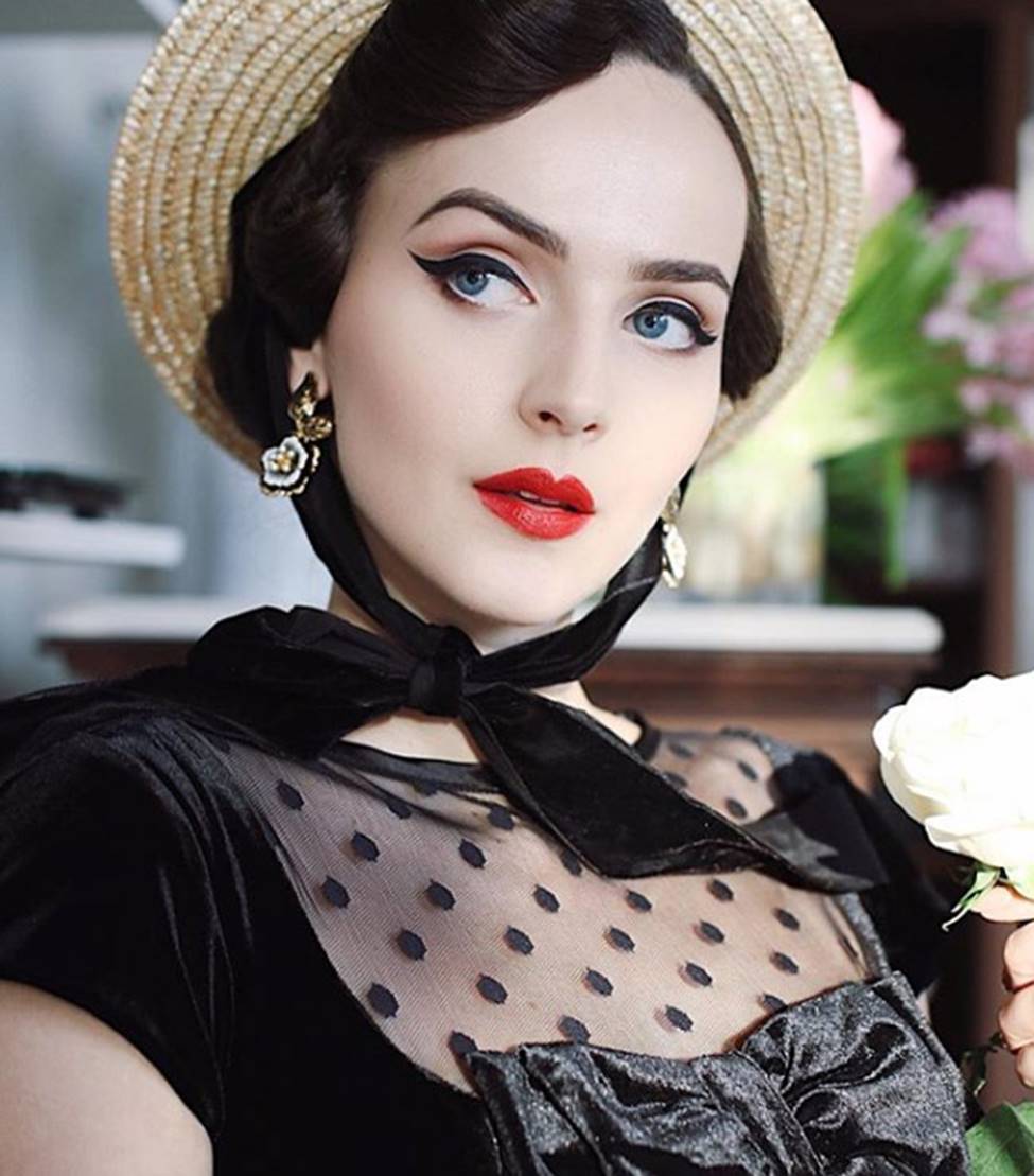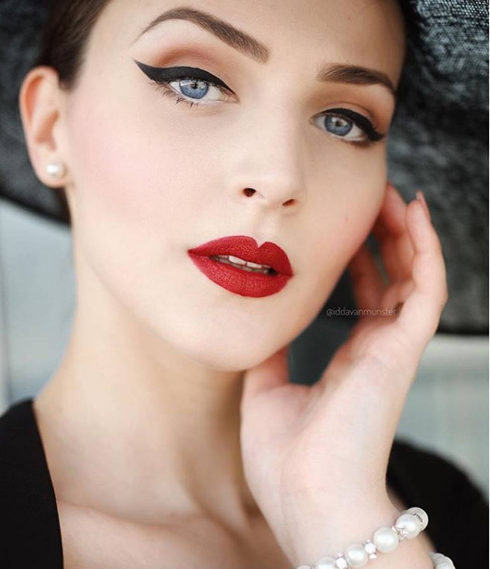 Bí quyết của kiểu trang điểm vintage là đường kẻ mắt mảnh kéo từ đầu tới đuôi mắt và cong nhẹ.