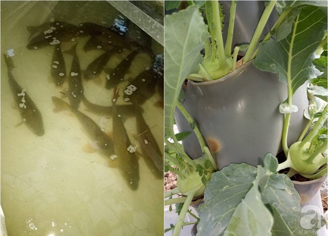 Hiện tại vườn rau vụ đông của gia đình anh Hùng có khá nhiều loại rau như củ cải xanh, củ cải trắng, cải thảo, súp lơ, su hào, bắp cải, cà chua và rau gia vị. Ngoài ra, anh còn trồng các loại cây ăn quả như chanh đào, cóc thái, khế, lá vối, cà tím... Không chỉ thế, anh còn thiết kế thêm bể cá để nuôi khoảng 30 con cá chép, bắt thêm cá trắm, rô phi... Anh Hùng cho biết, anh nuôi cá để tăng thêm thực phẩm sạch, an toàn cho sức khỏe của gia đình. Anh còn tận dụng nước cá làm nước tưới rau cho toàn bộ vườn.