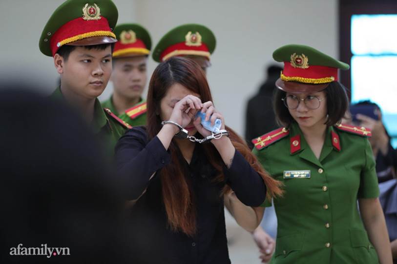Nghe xong tuyên án, bị cáo cúi gằm mặt gần 1 phút rồi bật khóc, sau đó cô được các cảnh sát nhanh chóng đưa ra xe thùng đi về trại giam.