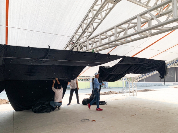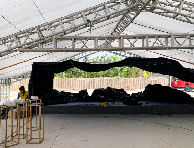 4 ngày trước lễ ăn hỏi của tiền vệ Nguyễn Quang Hải và Chu Thanh Huyền công tác dựng rạp đang được hoàn thiện